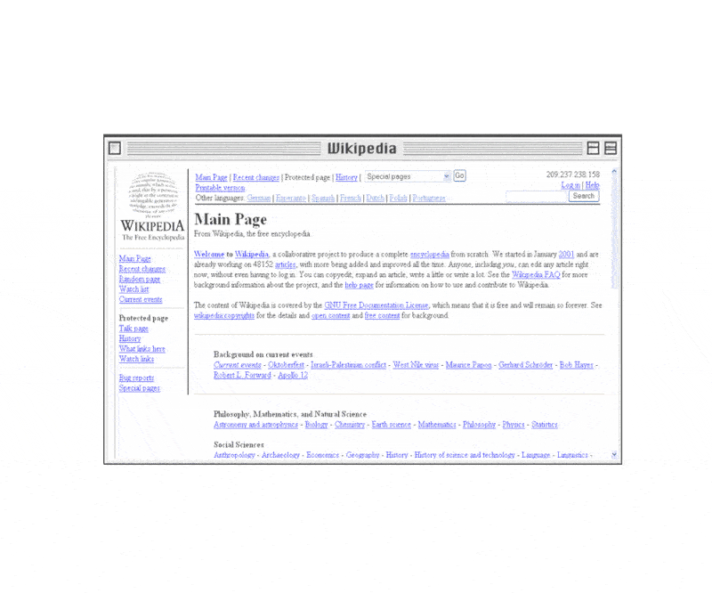 但擁抱草根專業主義的奇蹟並沒有被扼殺。這個被認為是專業百科全書 Nupedia 的補充性工具,改了名字——Wikipedia,在幾天後就上線了。二十年來,它的確如 Wales 所希冀的,成為了「一個每個人都能夠免費獲得全部人類知識的世界」。
