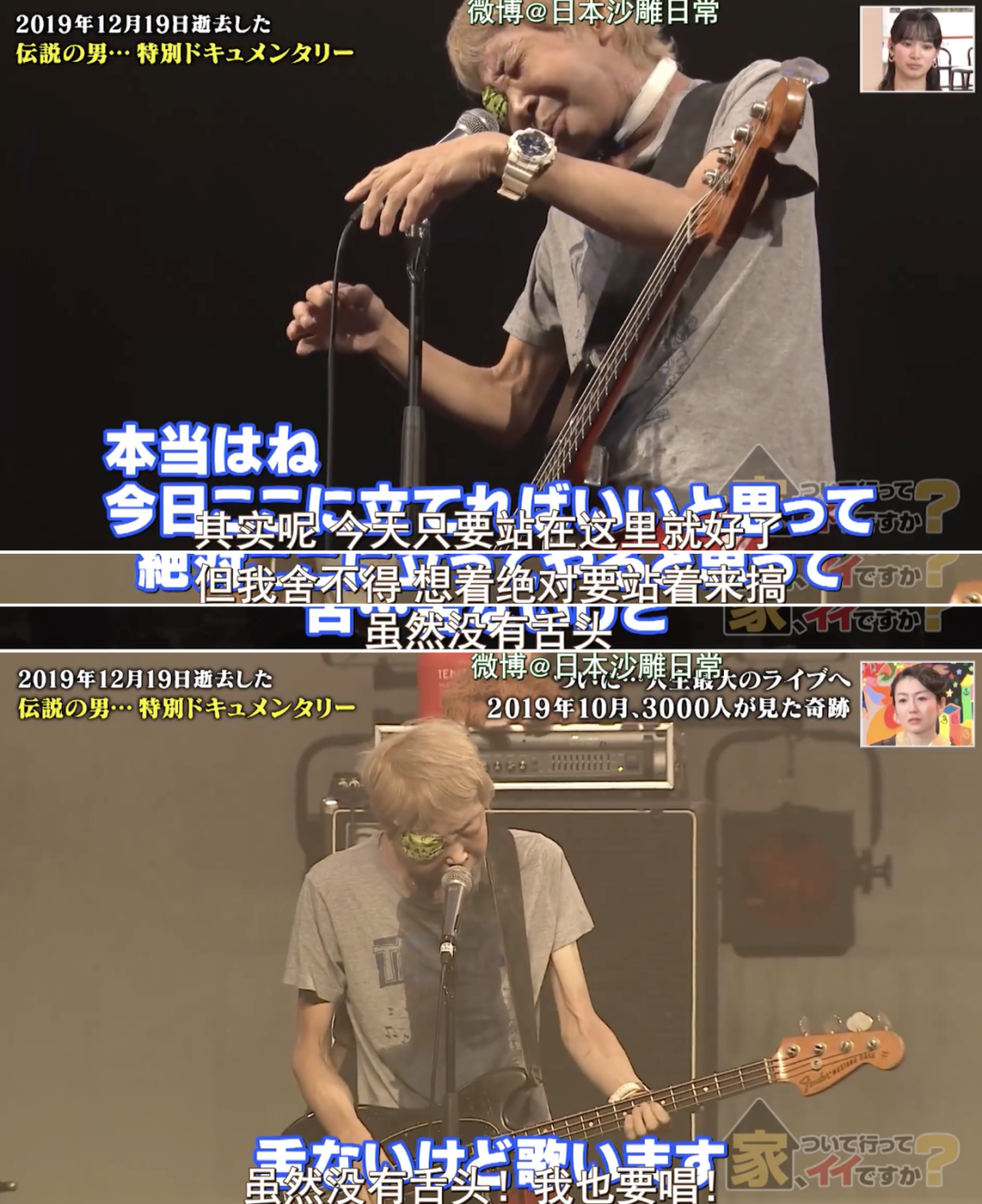 “其實呢,今天只要站在這裏就好了,但我捨不得,想着絕對要站着來搞,雖然沒有舌頭,雖然沒有舌頭,我也要唱!”