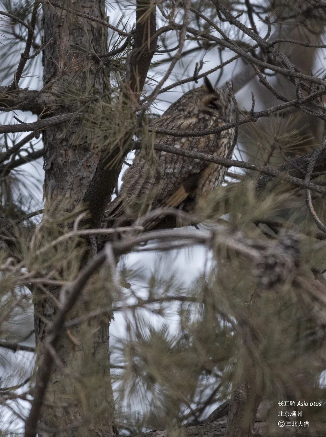 大貓拍攝的通州樹上的呆呆的長耳鴞