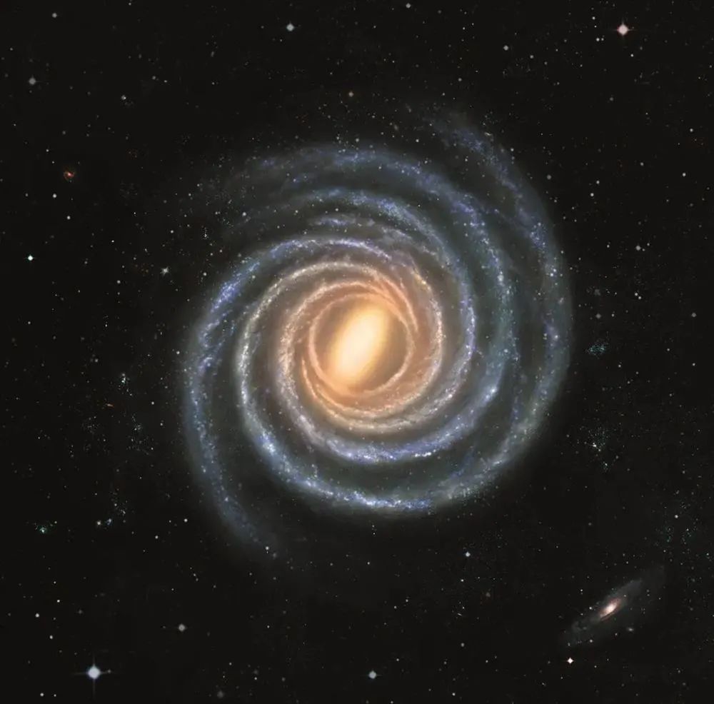 我們可能生活在一個四旋臂的旋渦星系(銀河系)中,它具有一個明亮且對稱的中心棒。| 圖片來源:XING-WU ZHENG AND MARK REID Bar and Spiral Structure Legacy Survey/Nanjing University/ Center for Astrophysics, Harvard and Smithsonian (Milky Way chart and illustration)