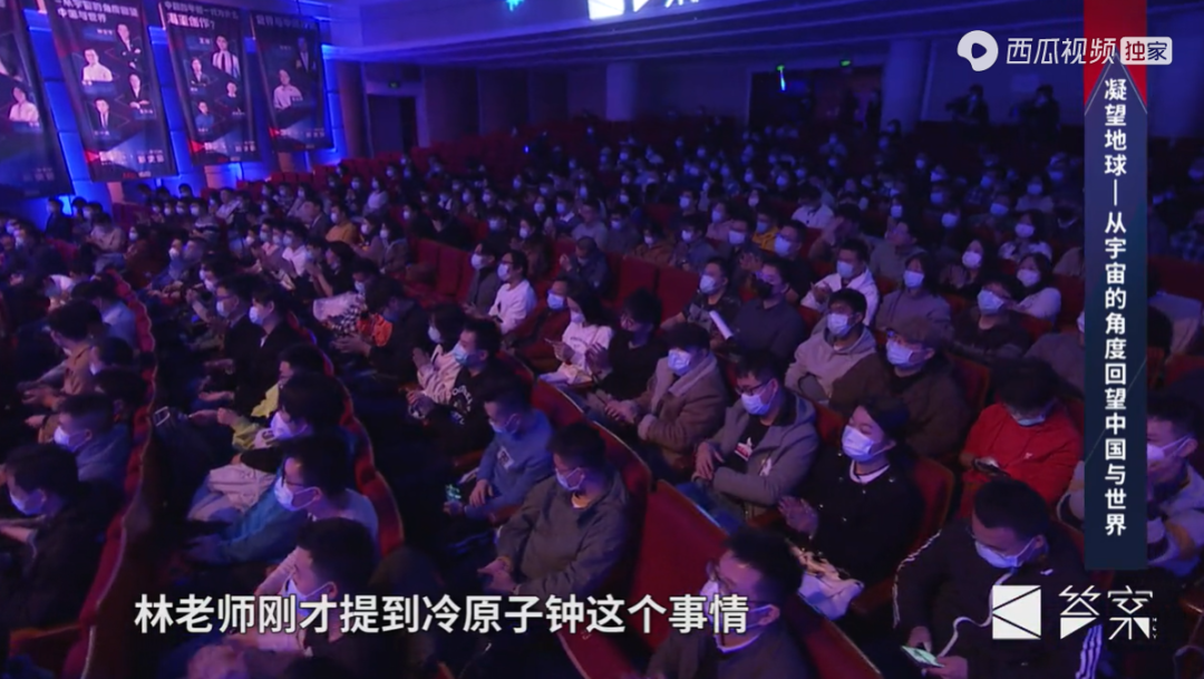 林寶軍:你剛才説到接近絕對零度,我再跟大家講一個故事。其實要達到絕對零度有很多辦法,其實我們科學家想了一個辦法是什麼呢?用激光組成一個網,其實温度是什麼,温度表徵分子熱運動的狀態,讓分子聚到這堆裏讓它動不了,只要碰到這個激光就彈回去之後,它就在這個圈裏,就利用這個原理就接近了絕對零度,我們現在就利用接近零度這個狀態,我們製造了冷原子鐘,這個冷原子鐘比我今天講的氫原子鐘精度還要好,好的而且很多。在這種原理我們在天宮二號上已經上了天,取得了很好的結果。
