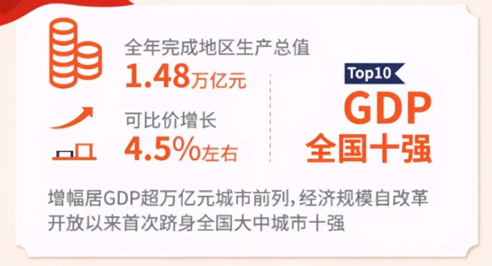 比如,日前南京市《政府工作報告》提及,2020年預計全年完成地區生產總值1.48萬億元,可比價增長4.5%左右,經濟規模自改革開放以來首次躋身全國大中城市前十強。