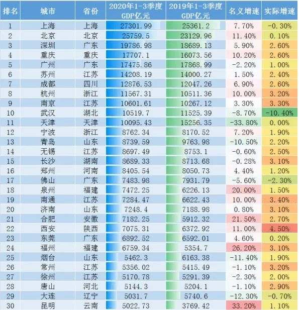 目前,各城市2020年的GDP尚未出爐,但有一些變化已經基本清晰。