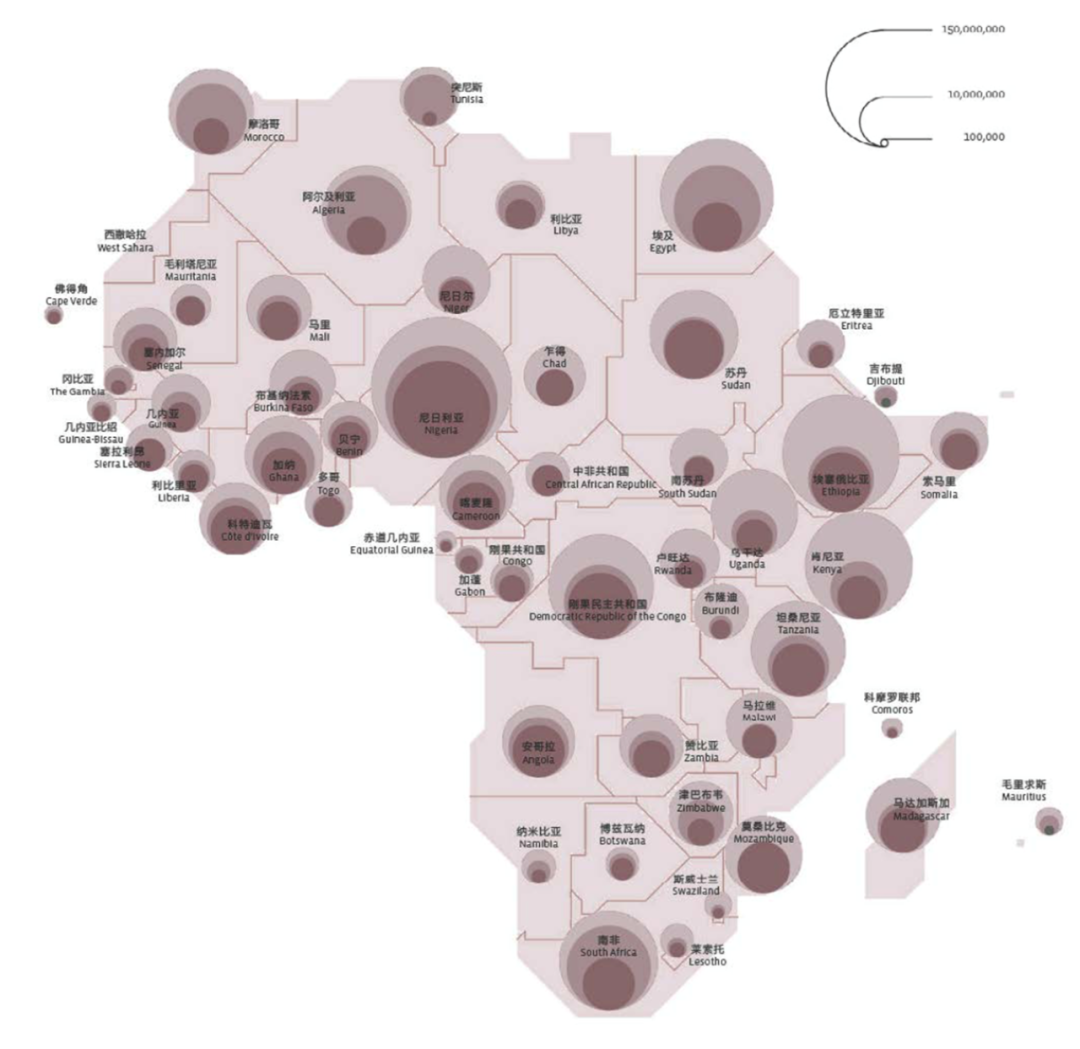 這張圖中的圓圈分別代表不同的含義,最外面的一圈是這個國家的總人口數,中間的圈是這個國家的城市人口數,最裏面的深色的圈是城市人口中住在貧民窟裏的人口數。