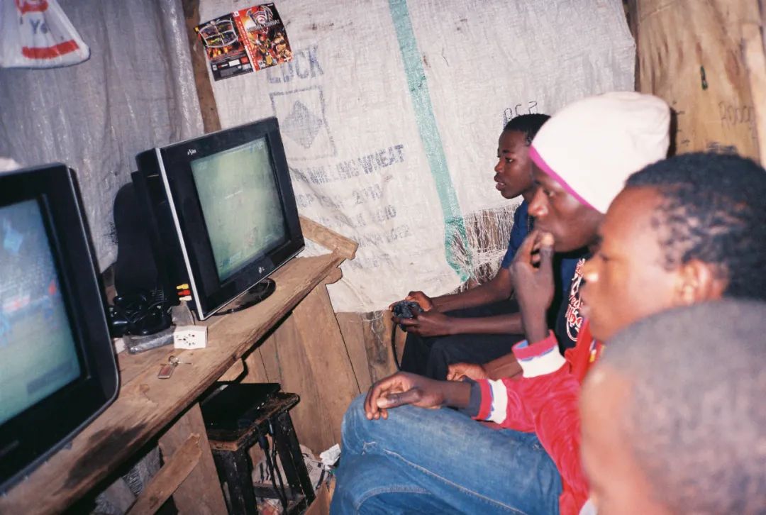 這張照片是他和朋友們在錄像廳裏,這個錄像廳其實也是一個複合型的空間。有一個人在右邊的電視玩遊戲,左邊的電視是好幾個人一起在看球賽,他們互不影響,最大化地發揮着這個空間的價值。
