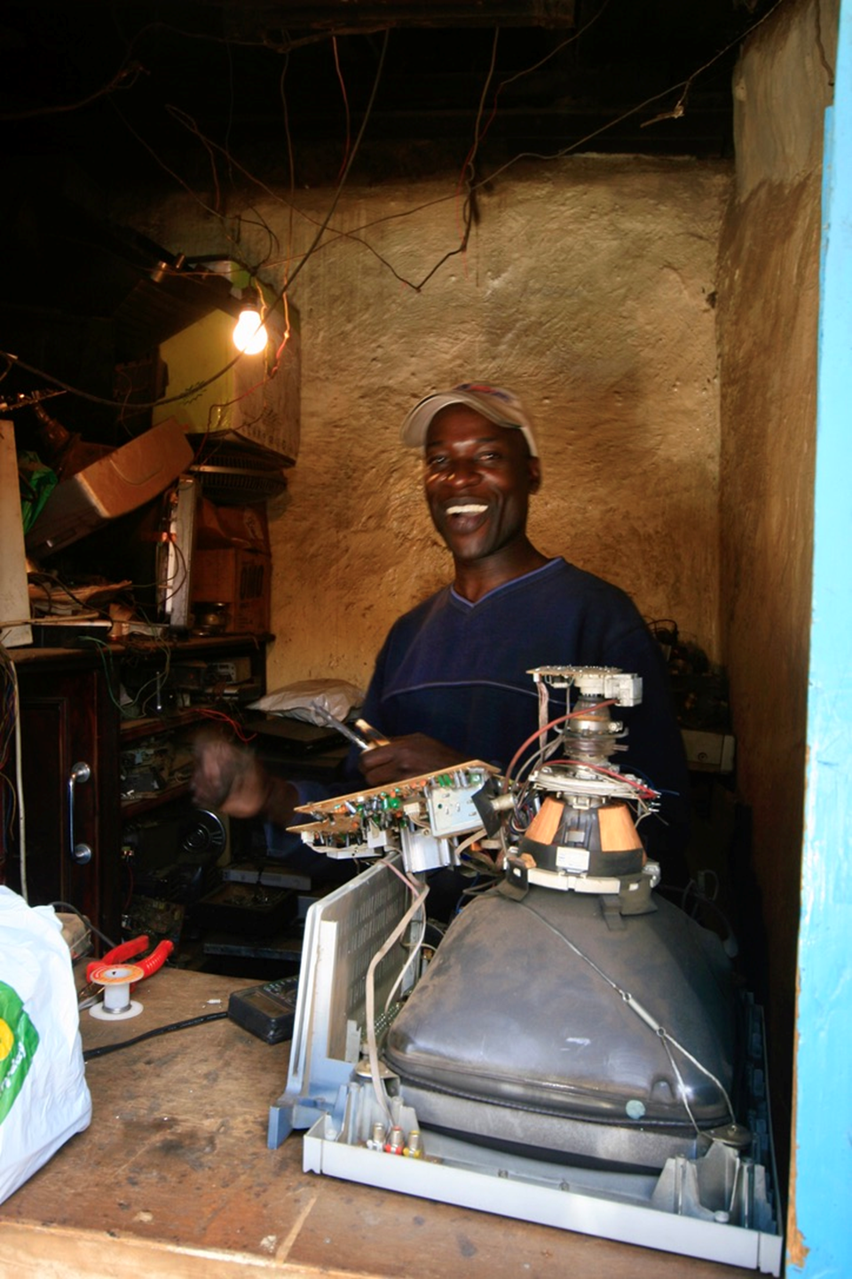 像安妮這樣擁有一技之長的居民,在貧困窟裏面還有很多。比如這是一位電工,叫托馬斯,他通過自己的雙手給鄰居修理電器,靠這個為生。我問他收入怎麼樣,他都笑到模糊。他用這些收入養活了一家五口,並且在貧困窟裏有一個三室一廳的房子,這在當地是非常不錯的條件了。