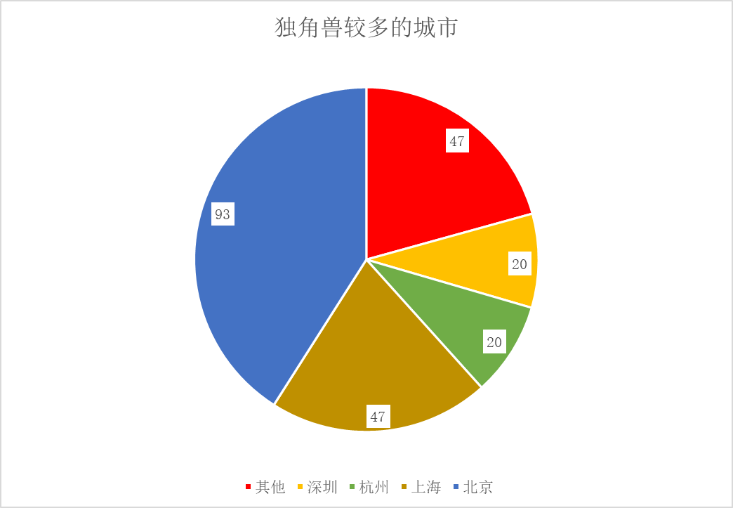 北京、上海、深圳和杭州這四個擁有獨角獸最多的城市,一共有180家獨角獸。