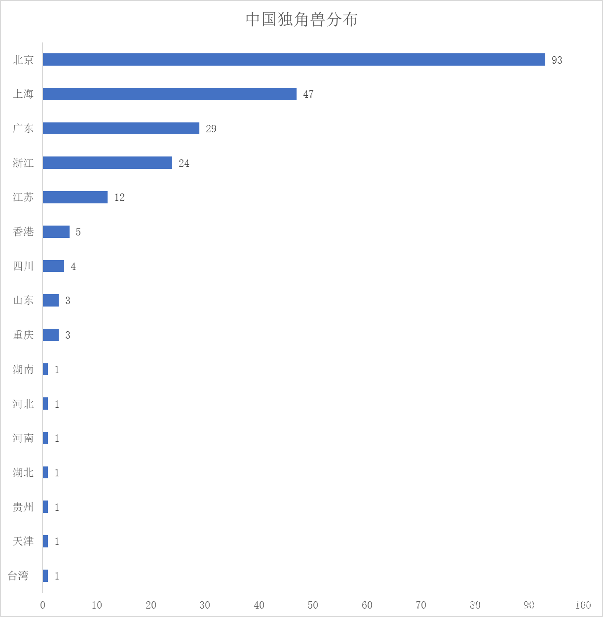 然而若是説起國內獨角獸的分佈,卻並不平均。227家獨角獸絕大多數分佈在東部地區,中西部地區只有11家獨角獸。