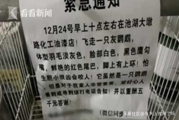 涉事人員王某説,“開車直接帶到潮州這邊來了,因為我工作的原因比較忙,所以我怕沒人照顧它,就放到父母這邊幫我照顧。上個月24號的時候,我聽我媽説,鸚鵡不知道什麼原因飛出去了,我當天就很着急當天就跑回來找,尋物啓事是我貼的,因為我覺得它對我很重要。”