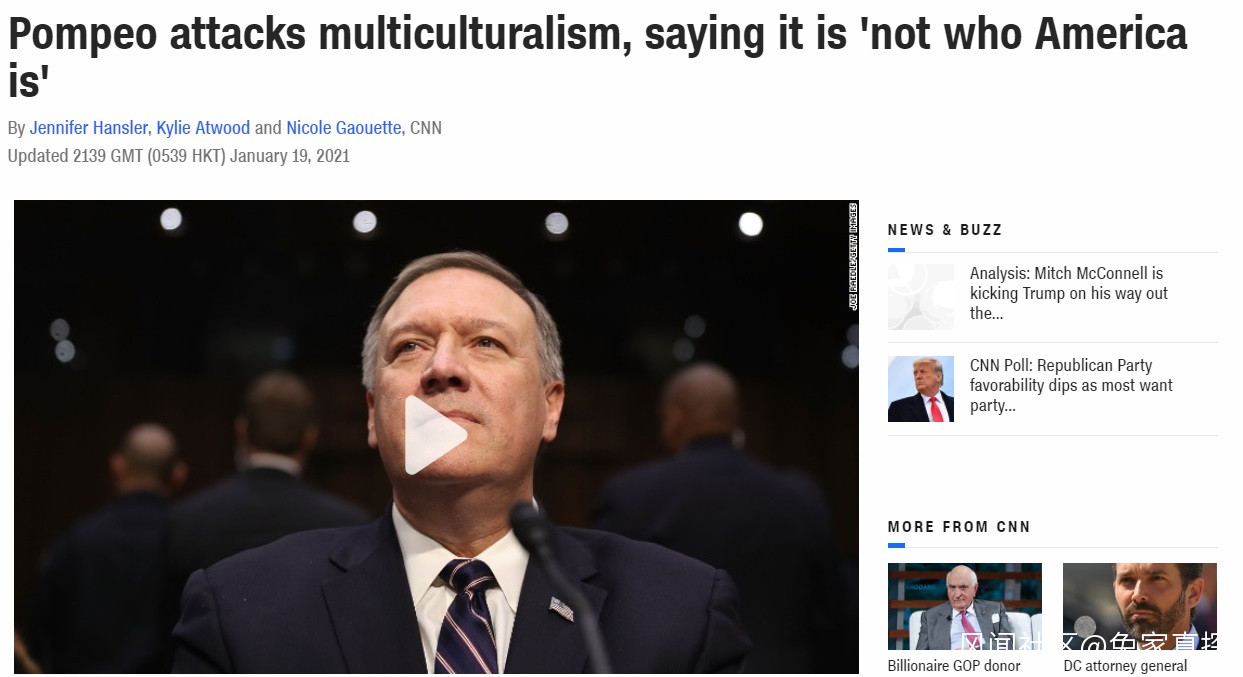 任期只剩一天,國務卿邁克·蓬佩奧(Mike Pompeo)進入了他的納税人資助的Twitter帳户,並譴責多元文化主義,稱“這不是美國”。