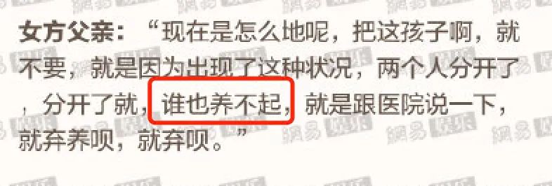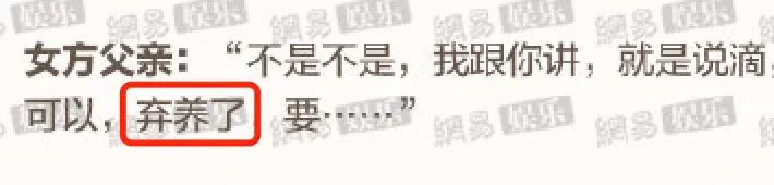 在這段錄音中,女方父親一直在重複強調“養不起”、“棄養”。