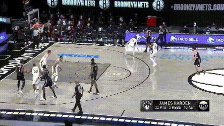 哈登防跟他體型非常接近的霍樂迪,雖然難説完美匹配,但霍樂迪不是哈登最討厭的小快靈類型,也不是無球跑來跑去的泥鰍魚,哈登不會太難受。到了銜接段,籃網還有布魯斯·布朗。