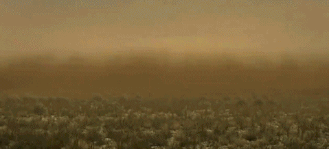 (《山海情》中村支書馬得福帶領湧泉村村民吊莊,不料路上遇到了沙塵暴)