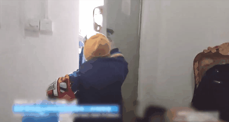 1月15日中午,牟熠打開家門,看到了披着藍色披風的塞羅奧特曼。