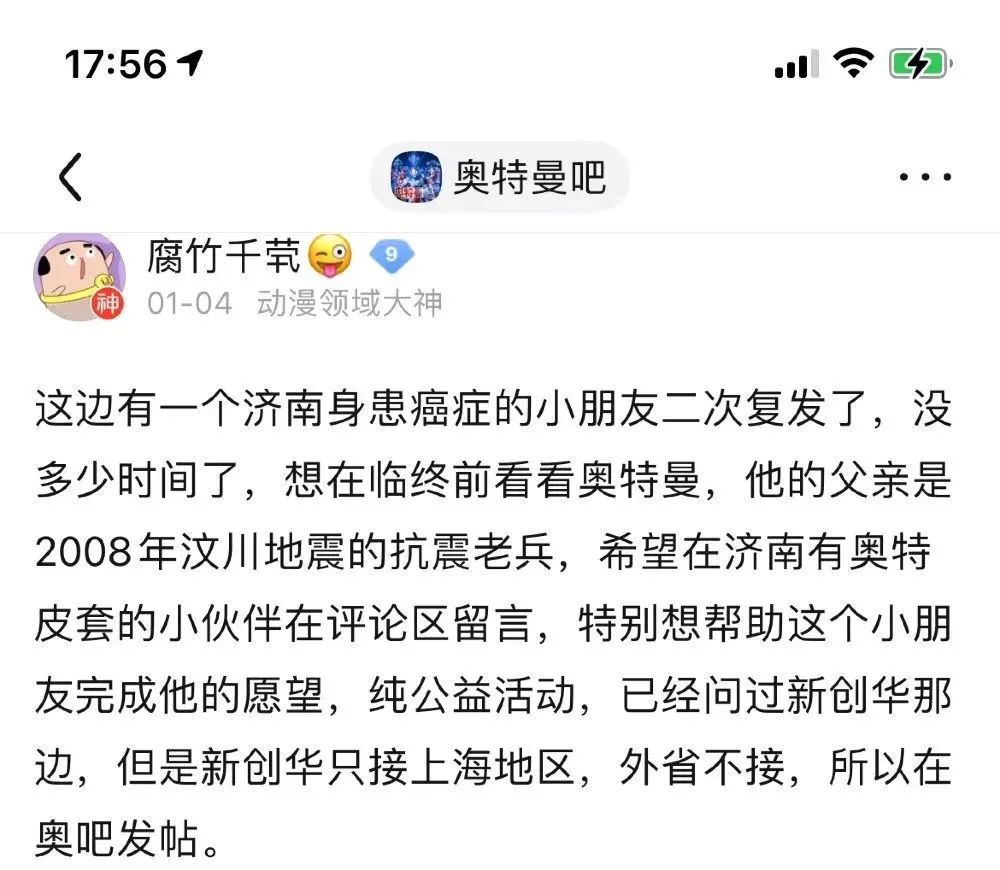 奧特曼貼吧的吧友們,看到求助消息後,展開了一場轟轟烈烈的尋找奧特曼行動。