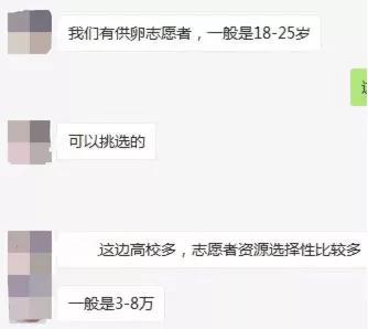 且柒財經瞭解到,在代孕服務之外,與之匹配的還有供卵市場。“因為這邊高校多,志願者資源選擇性比較多,一般3萬到8萬,具體一人一個價,具體還要看志願者身高、長相和學歷。”小果表示,這些“志願者”年齡在18到25歲。