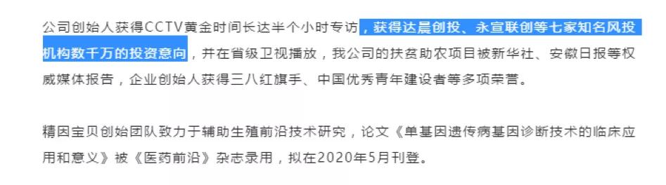 且據“精因寶貝”工作人員曉蘇(化名)發來的公司介紹顯示,該機構獲得達晨創投、永宣聯創等7家站知名風投機構數千萬的投資意向。