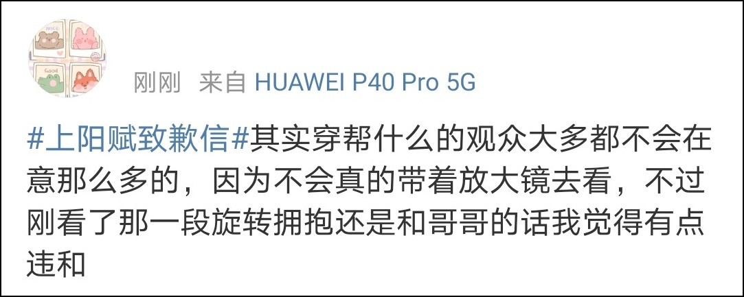 對於這份致歉信,有網友認為,不少古裝劇中都有“今穿古”的穿幫鏡頭,追着《上陽賦》罵大可不必。