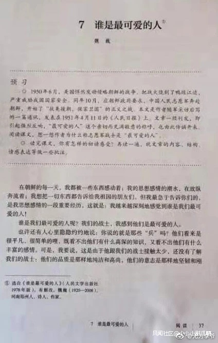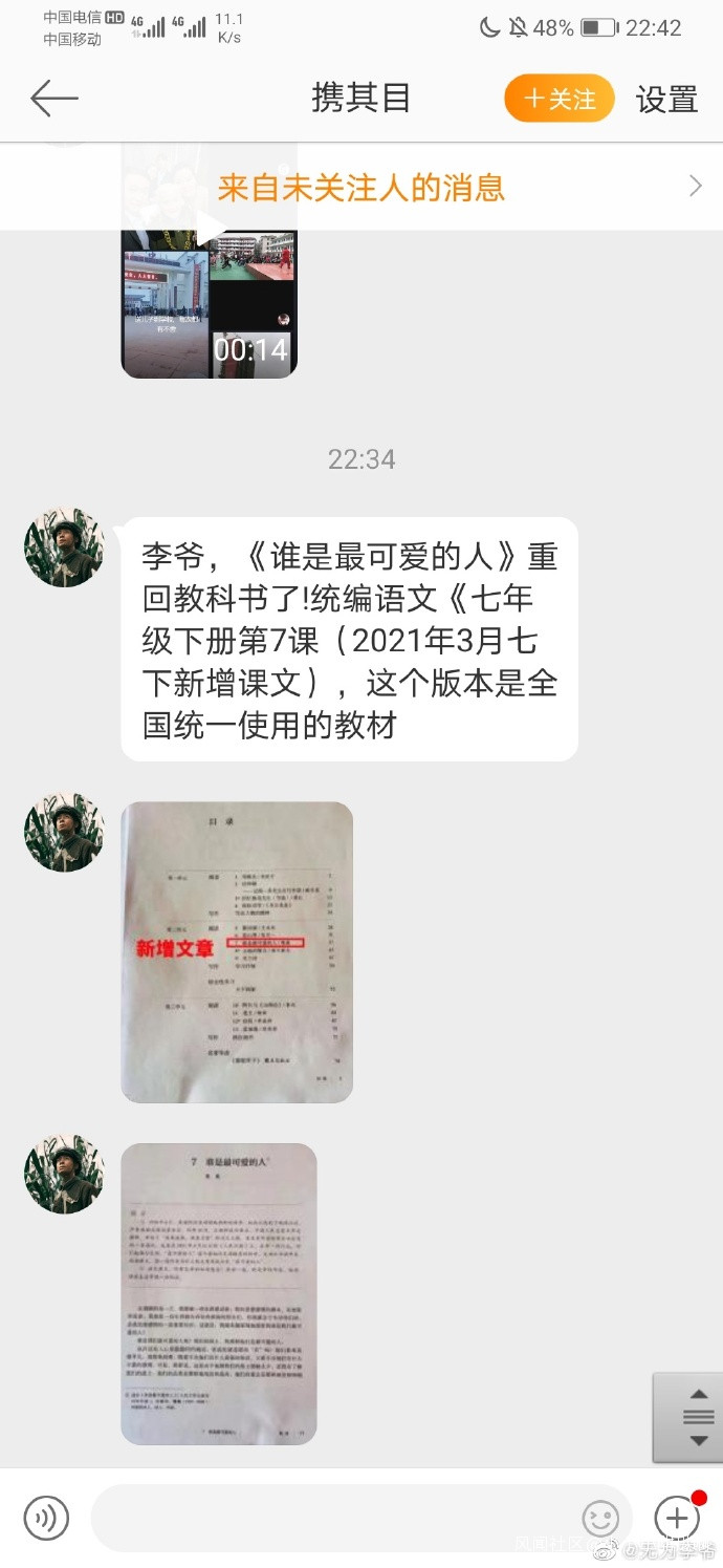 網友投稿:李爺,《誰是最可愛的人》重回教科書了!統編語文七年級下冊第7課(2021年3月七下新增課文),全國統一使用教材。