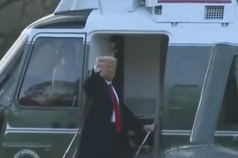 當地時間1月20日,特朗普在登上“海軍陸戰隊一號”時向人們揮手致意