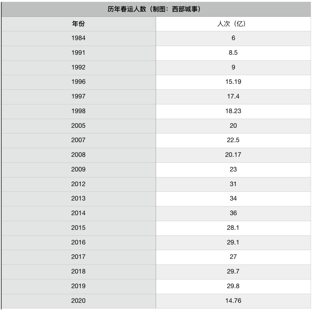 也就是説,在見證了2020年春運的“冷清”後,2021年,我們仍將繼續見證近20多年來的“最寬鬆”春運。