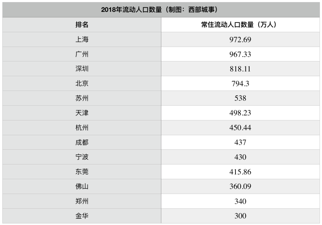 而上海、廣州、深圳、北京、蘇州、天津、杭州、成都、寧波、東莞的常住流動人口均超過400萬,這與空城指數對應的城市基本吻合。