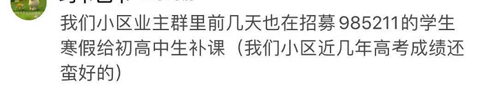 特別是如果小孩成績不好,業主裏有211/985的能人集中輔導,做夢都要笑醒吧。