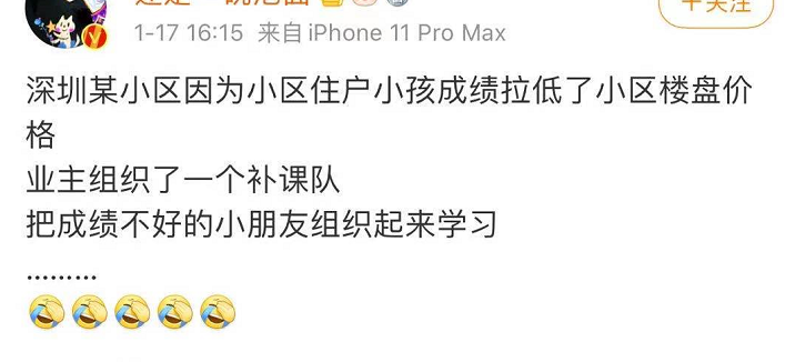 這兩天,有一條關於深圳某小區房價和住户小孩成績的微博引起熱議,大家哭笑不得之餘,又感慨萬千。
