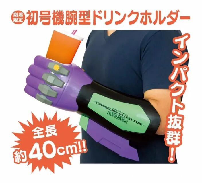 為了配合《新世紀福音戰士新劇場版:終》的上映,官方還推出了限定周邊——初號機手臂!可以拿來擺放,也可以拿來穿戴,自帶防滑效果牢牢地抓住你的飲料!