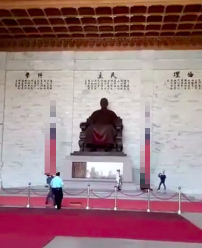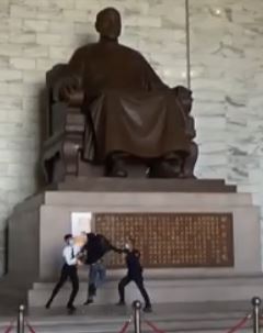 綜合“中時新聞網”和“自由時報”等台灣媒體報道,台灣“獨派”團體“台灣國”成員陳峻涵在當日上午衝進中正紀念堂,朝蔣介石銅像丟擲雞蛋。現場管理人員對其進行了制止,雙方發生了肢體碰撞。當地警方在接報後派員到場,將該男子控制並帶回審訊。