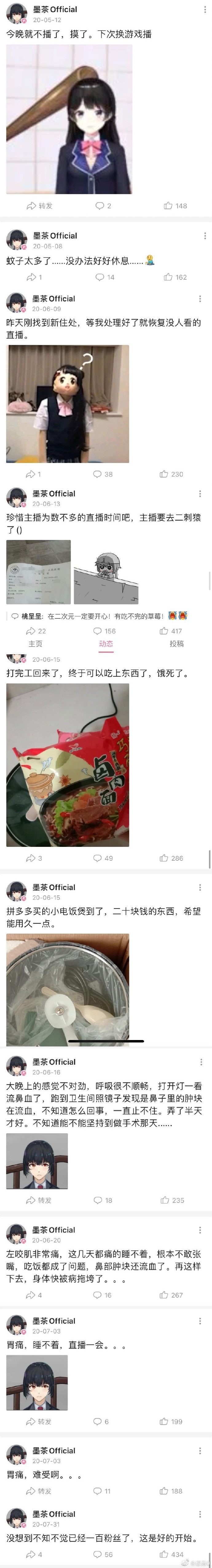 根據網友在評論區的爆料,“墨茶Official”的人生軌跡如下:奶奶生病,因病致貧,父母躲債跑路,自己高中輟學後打工餬口,結果發現鼻子上長了腫瘤。最後在切除腫瘤時發現罹患糖尿病,但無積蓄繼續治療,最後因酮症酸中毒逝世(有網友解釋,酮症酸中毒是因為過度節食)。