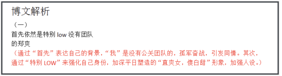 同樣的技巧,在老師解讀爽文裏也同樣表現了出來。一時間,我竟不知道究竟是鄭爽作為編劇更優秀,還是老師的博文解析更優秀。