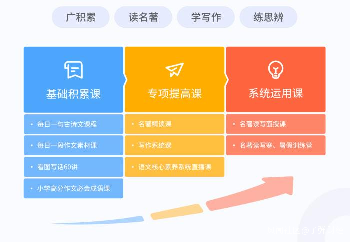 當前,大語文概念更多隻是外部人士對語文核心素養的一種解讀。“這就是體制內外的差異,話語體系不一樣的地方。”雲舒寫創始人吳本文對「子彈財經」説道。