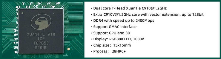 除了軟件層面大量的移植工作,在硬件層面也需要高性能處理器的支持。此次運行安卓10系統的RISC-V芯片是平頭哥在2019年發佈的高性能處理器玄鐵910,此次運行RISC-V版安卓系統的SoC集成3核玄鐵910,以及單核GPU,基於台積電28nm工藝,CPU主頻最高可達1.2GHz。