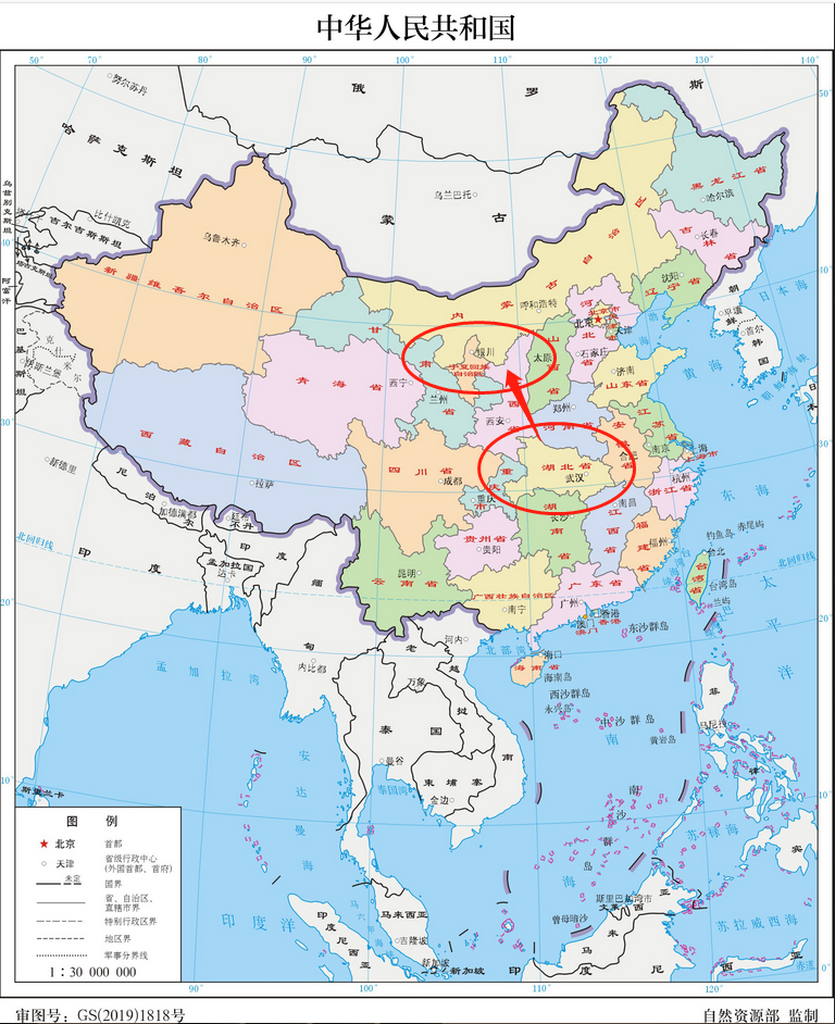 藏南地區、釣魚島、赤尾嶼、南海諸島、台灣島該有的一個都沒有……