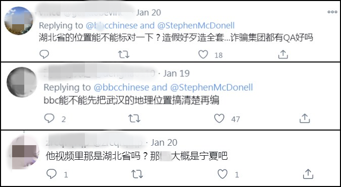 當地時間1月19日,BBC News中文版官方推特發佈了一則新的紀錄短片,名為《重返湖北》,宣稱要記錄一年後湖北街頭的景象。但在視頻開頭,他們甚至不知道湖北位於中國的哪個位置。