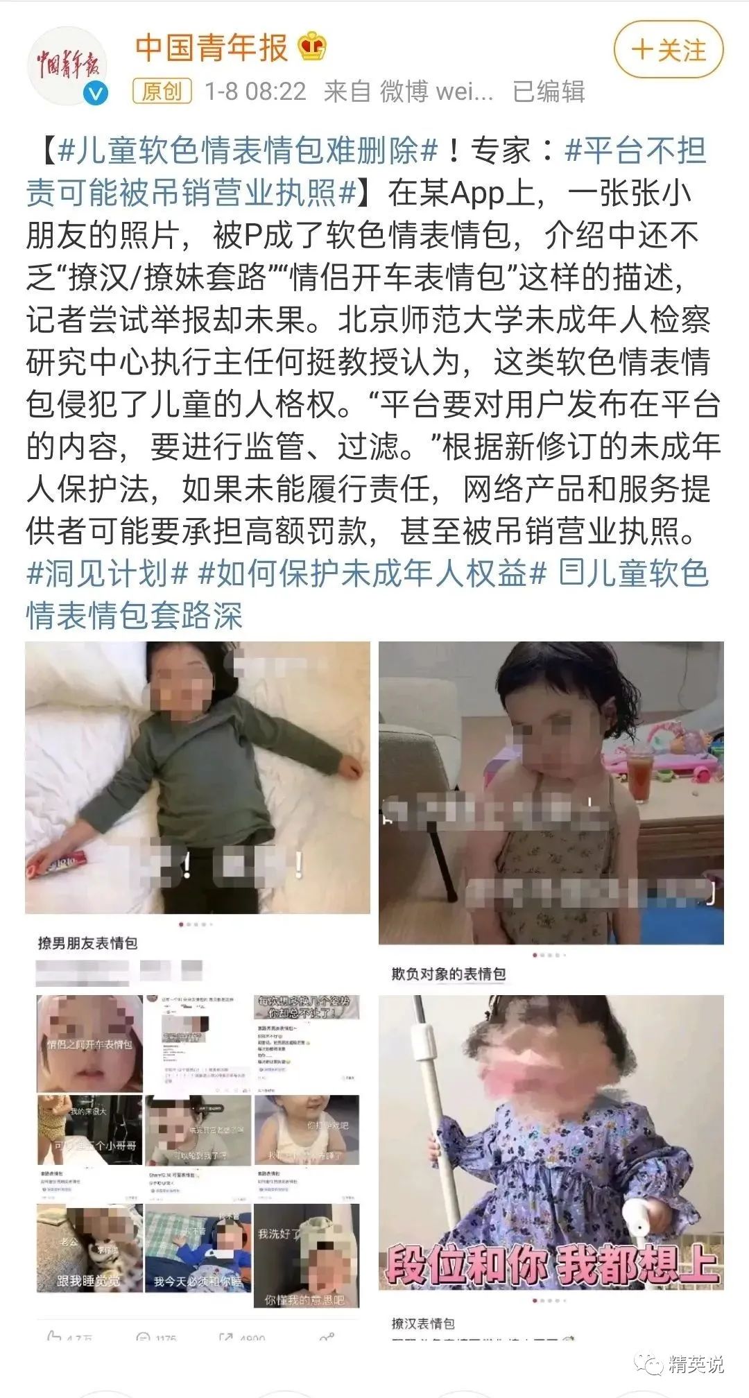 人民日報、中國青年報:憤怒!用兒童做軟色情表情包!網絡平台如何擔責?