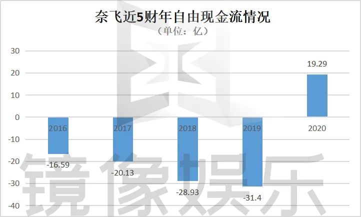 如此強大的內容斥資,緊靠營業收入是遠遠不夠的。即便奈飛每年的財務報表都十分好看,但事實上,其成本的消耗需要靠不斷的融資來支撐。不過,這一狀況過於將在2021年得到改善。