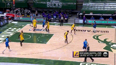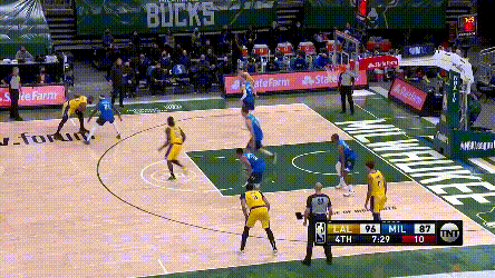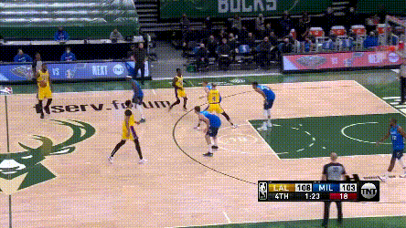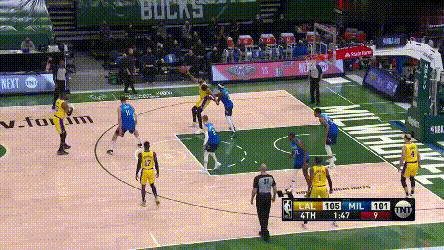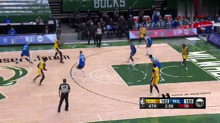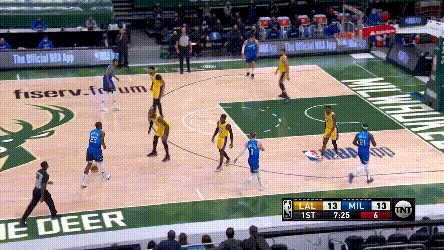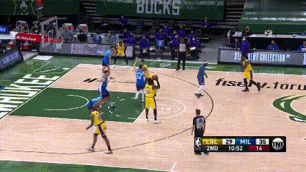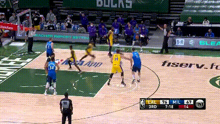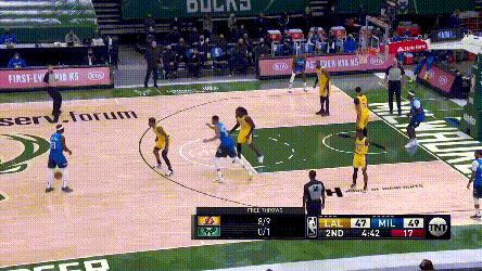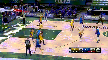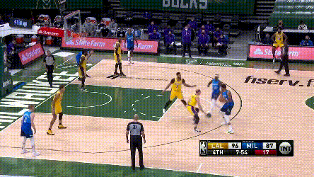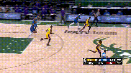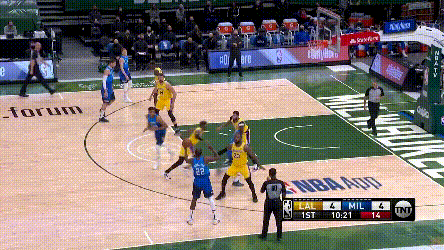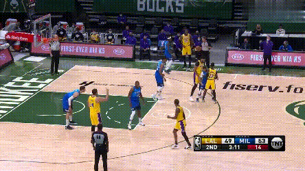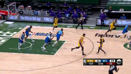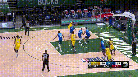 OK,我懂,這是布登霍爾澤的籃球哲學,從最優化控制對手投籃分佈的角度來講,漏三分總是比籃下被打穿的好,雄鹿在過去兩個賽季也靠這套邏輯成為了聯盟最頂尖的防守球隊。考慮到湖人是如此強悍的一支攻筐球隊,雄鹿優先保籃下也可以理解,雖然字母哥的協防絕不是每個回合都必要。