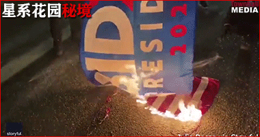 在一些街道的交叉口,拜登、哈里斯大旗是被作為美國國旗的附件被燒燬的…
