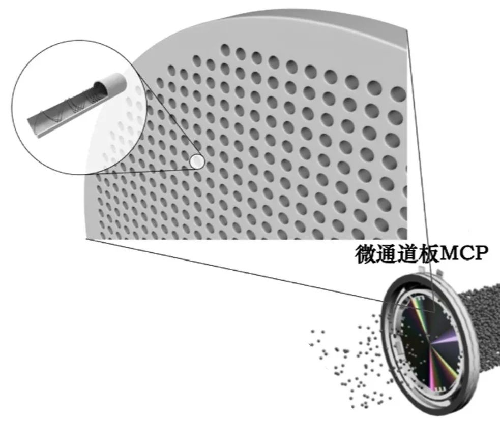 另一個有趣的現象是電子倍增。電子倍增是通過像增強器來完成的。微通道板裏有很多排列整齊的孔道,當1個電子進入孔道並撞擊孔道內壁的二次發射材料時,會誘導大約1~3個二次電子發射。這些電子被外部的電場加速,再次撞擊孔道內壁則會激發更多的電子,這個過程不斷重複,會導致大量的電子被激發出來。大量的電子通過外電場的加速,撞擊到熒光屏上,再次轉換為光信號。此時的光信號,已經是入射時強度的成百上千倍了。