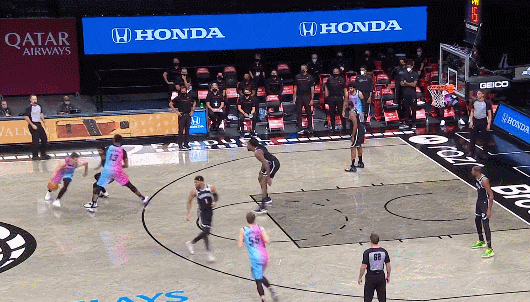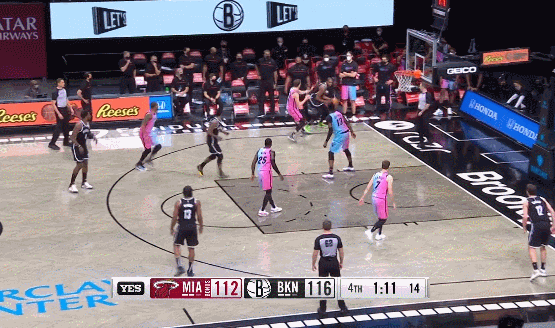 今天這場球籃網最多領先過18分,而且長期保持兩位數以上的領先,但熱火的殘陣就是有本事把分差數次迫近到1分。或者換個角度,籃網就是有本事把領先都浪掉。