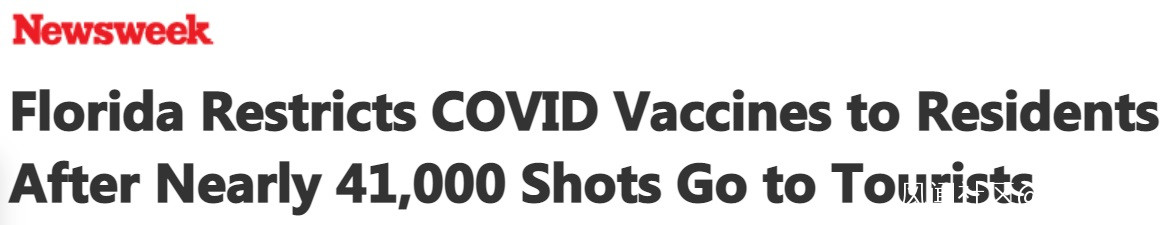 根據美媒newsweek報道,佛羅里達州宣佈了對COVID-19疫苗的新限制,將其限制為居民和醫護人員使用,儘管供應有限,但仍有近41,000名來自州外和國外的人接種了該疫苗。