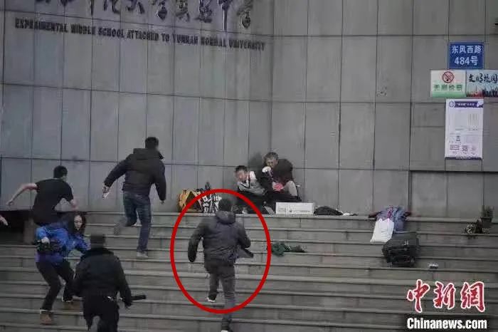 而實際上,這個人是昆明警方的談判專家,他跪在地上,懇求兇徒把孩子放了,換自己上去當人質。
