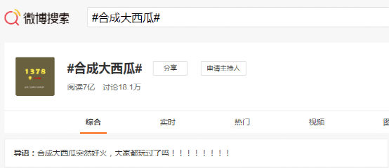 週末,一款名為《合成大西瓜》的H5小遊戲突然在微博上走紅。