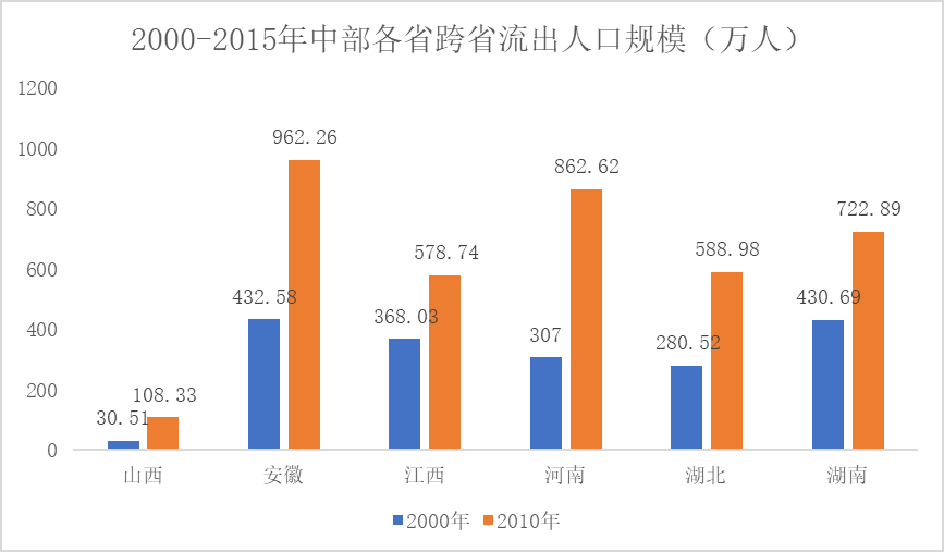 從第六次人口普查的結果來看,中國農村人口的有效流動,從整體上呈現出由中部和西南地區向東南沿海地區流動的總趨勢,中部地區六省份安徽、河南、湖南、江西、湖北、山西省貢獻了共計3823萬的流出人口。在這其中,流出人口前三位的省份是安徽、河南與湖南,而一直以來因為最沒有存在感而被人們記住的江西省,同年也有近578萬人向外省流出。
