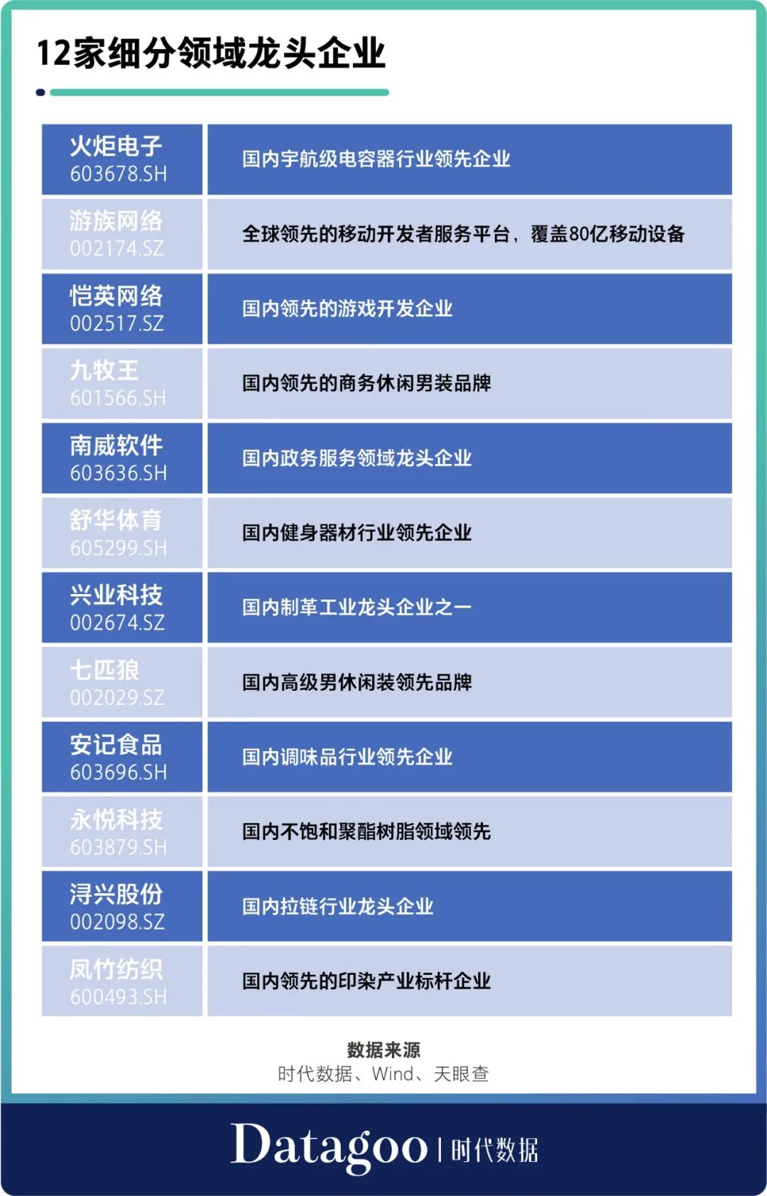 12家細分領域龍頭企業
