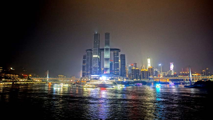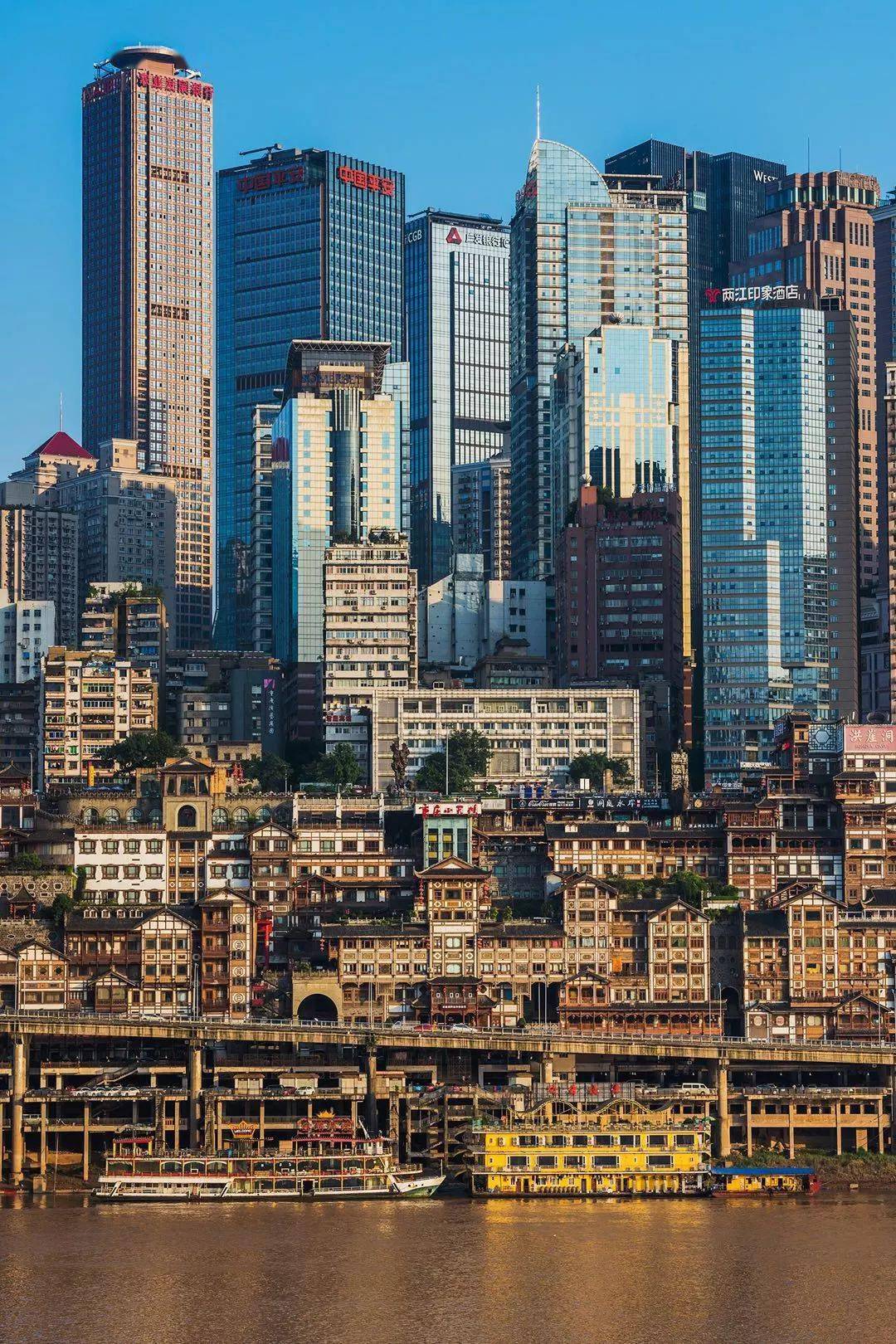 重慶已建成的最高摩天大樓是位於渝中區朝天門的來福士廣場T3N和T4N,高度均為354.5米,相比一線城市北上廣的標誌性建築其實並不出挑。然而,重慶複雜的山區地形使得城市建築羣不是在一個平面上分佈,而是錯開為若干層次,高低差也較之平原城市更為鮮明。
