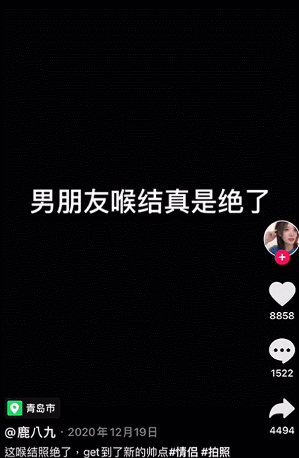 短視頻裏頭,女孩勇猛突擊喉結,男生時而嬌羞,時而霸道,生活的荒誕被濃縮在短短的30秒。