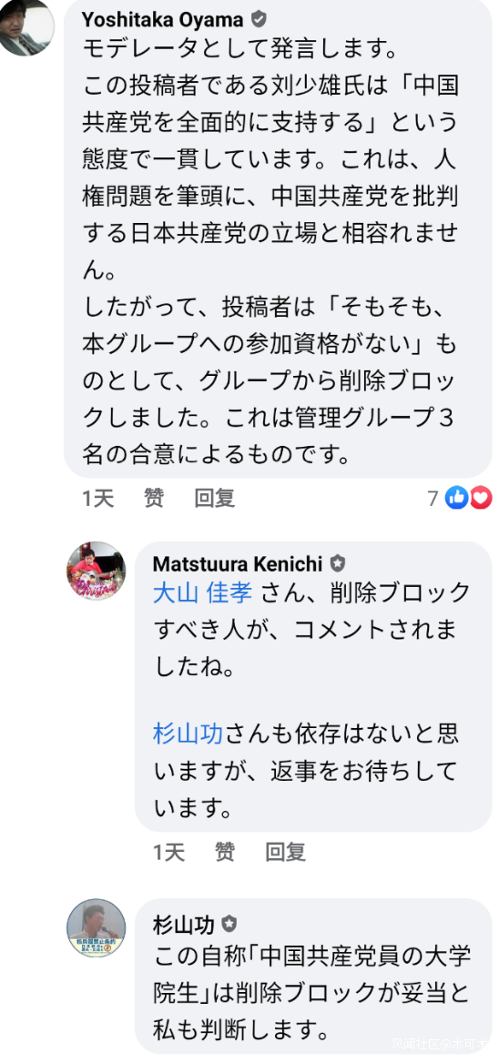 羣組裏一些瞭解中國的日共黨員,表達了跟大部分留言相反的見解
